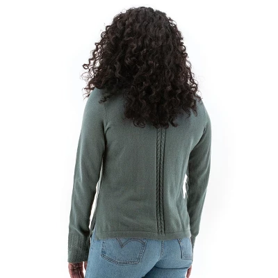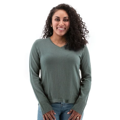 The Eloise not only offers you warmth, comfort, and the lightweight of 100% cotton, but it also provides the versatility to get its wearer through morning to night from fall to winter effortlessly. With a relaxed fit, this sweater will give its wearer a timeless, casual look, perfect for the holiday season. Made from 100% cotton jersey knit in a 12 gauge knit, this V–neck sweater features cable details at the center back seam and pointelle knitted cuffs for a feminine flair. This fully fashioned sweater is a timeless addition to your winter wardrobe.